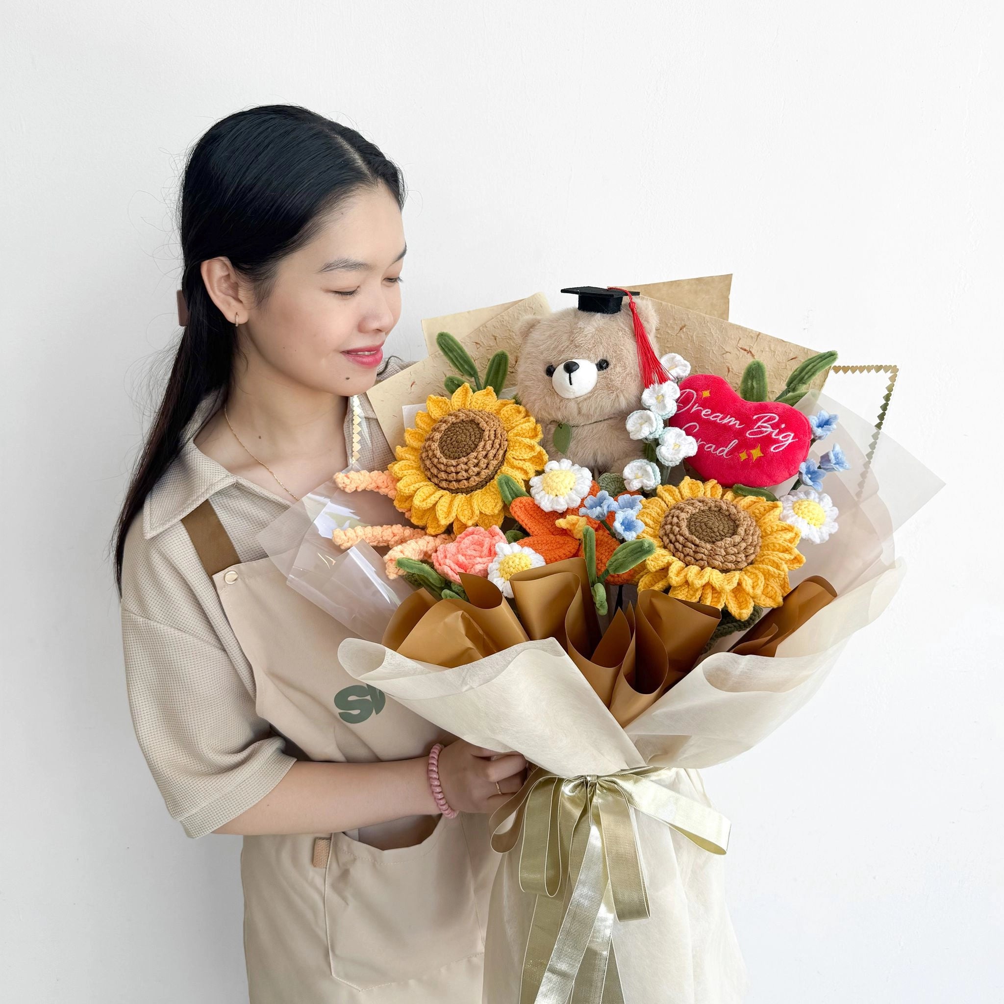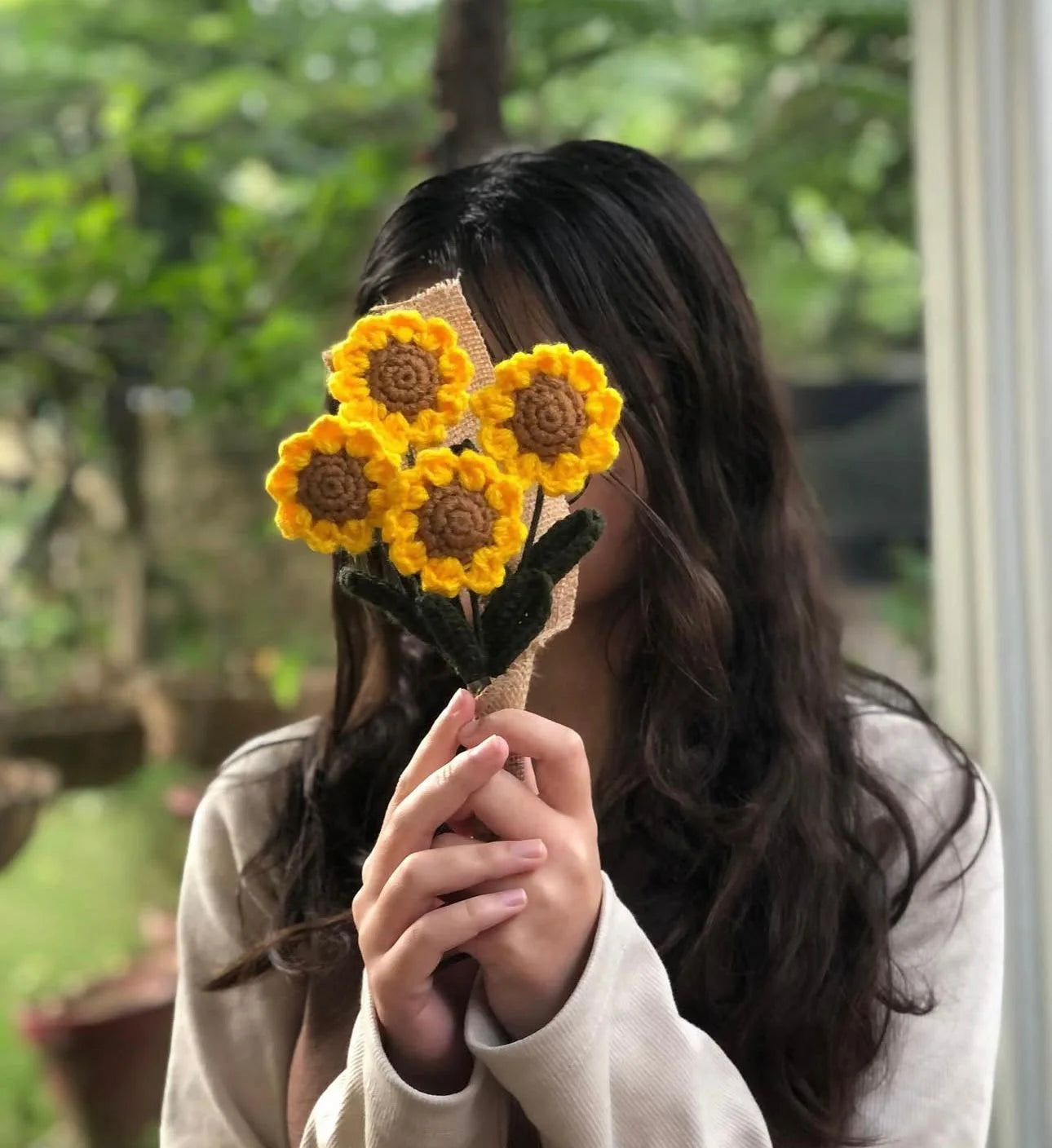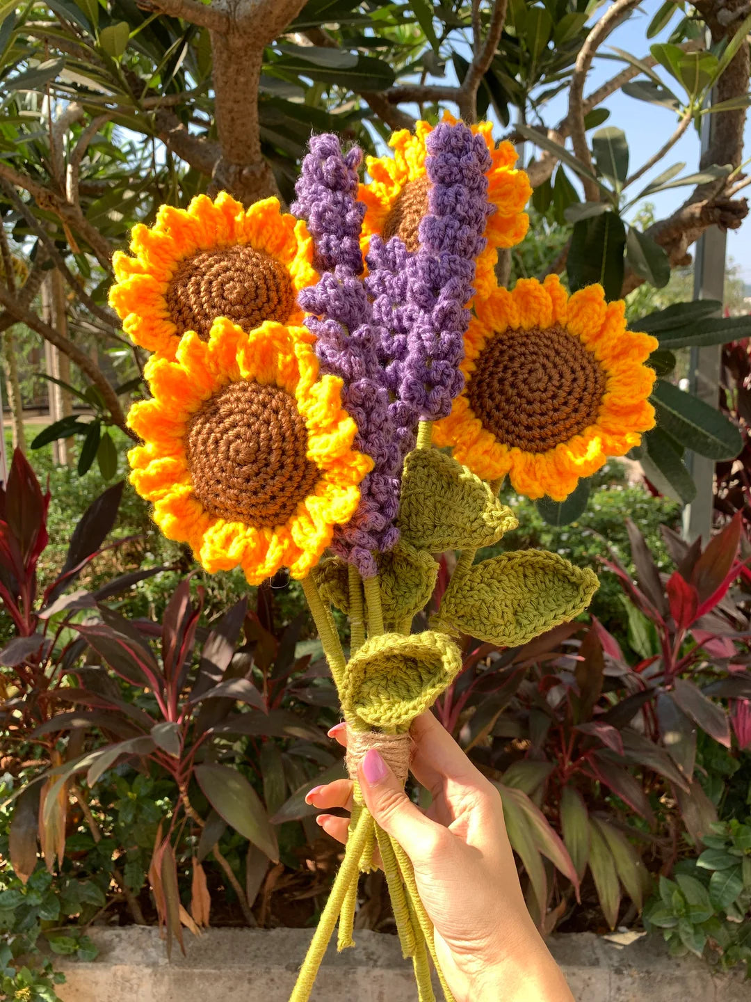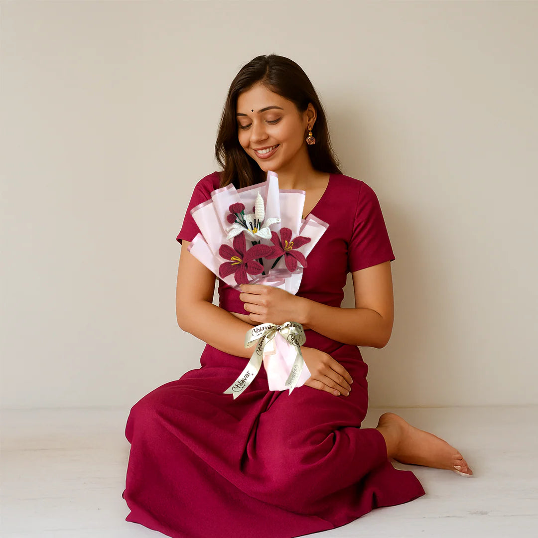 Our crochet flowers are handcrafted using high-quality yarns and materials chosen for durability, softness, and long-lasting beauty.