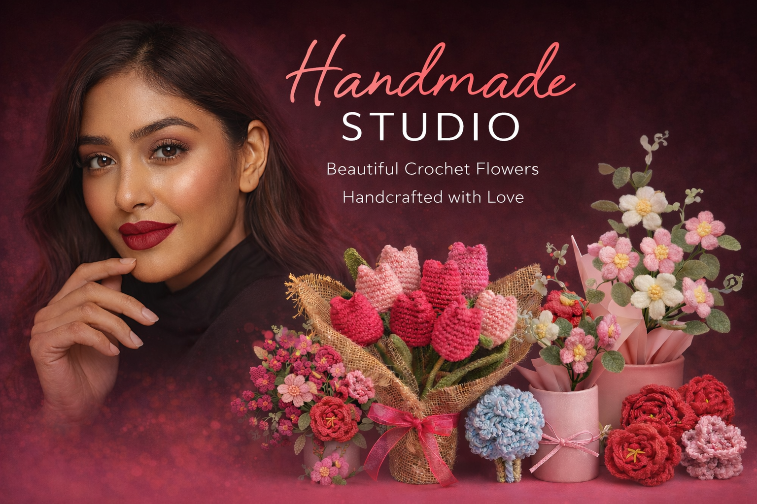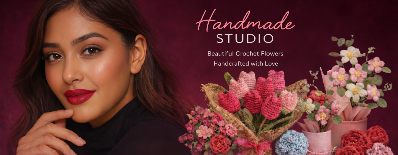 Handcrafted crochet flowers made with love, detail, and timeless beauty by Handmade Studio.